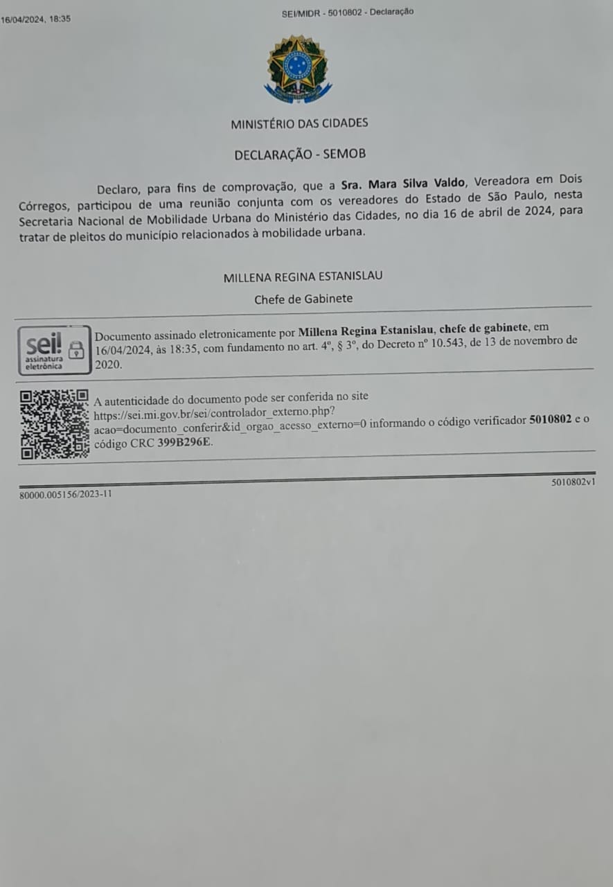 Relatório de Viagem referente a viagem à Brasília da Vereadora Mara Silvia Valdo