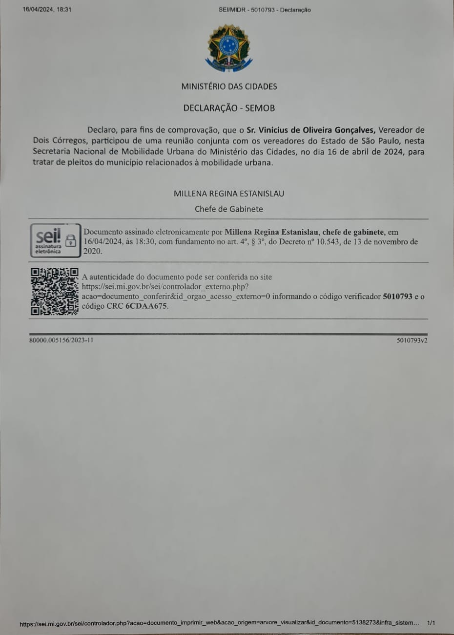 Complemento: Prestação de contas da viagem à Brasília - DF, dos(as) Vereadores(as) Vinícius e Mara.