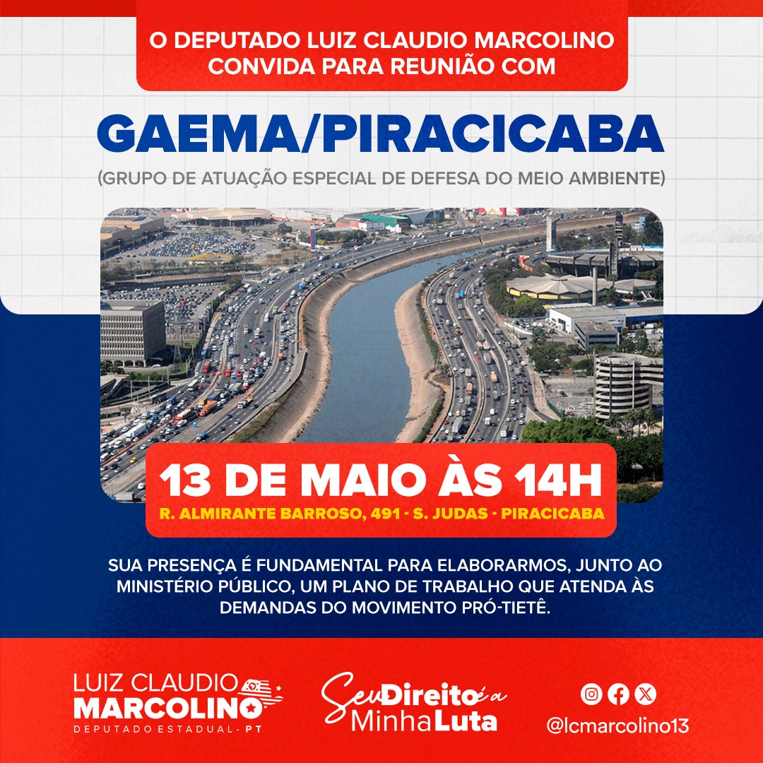Assunto: Solicitação de uso do veículo oficial - Convite enviado pelo Deputado Estadual Luiz Cláudio Marcolino, Gaema/Piracicaba - Grupo de Atuação Especial de Defesa do Meio Ambiente. (CANCELADA)